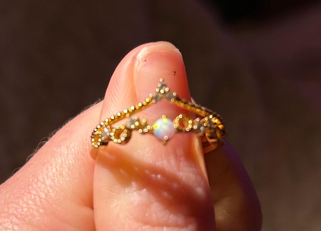 This layered ring features an opal crown design, expertly crafted to add a touch of elegance to any outfit. With its stunning and unique design, this ring is the perfect addition to your jewelry collection. Made with high-quality materials, it is sure to last for years to come.
