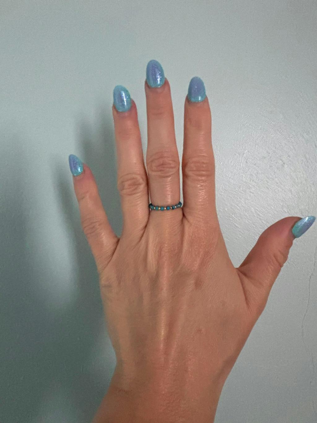 Stretchy Gemstone Ring featuring semi-precious gemstones and delicate sterling silver plated beads, offering a comfortable fit with a touch of refined elegance.